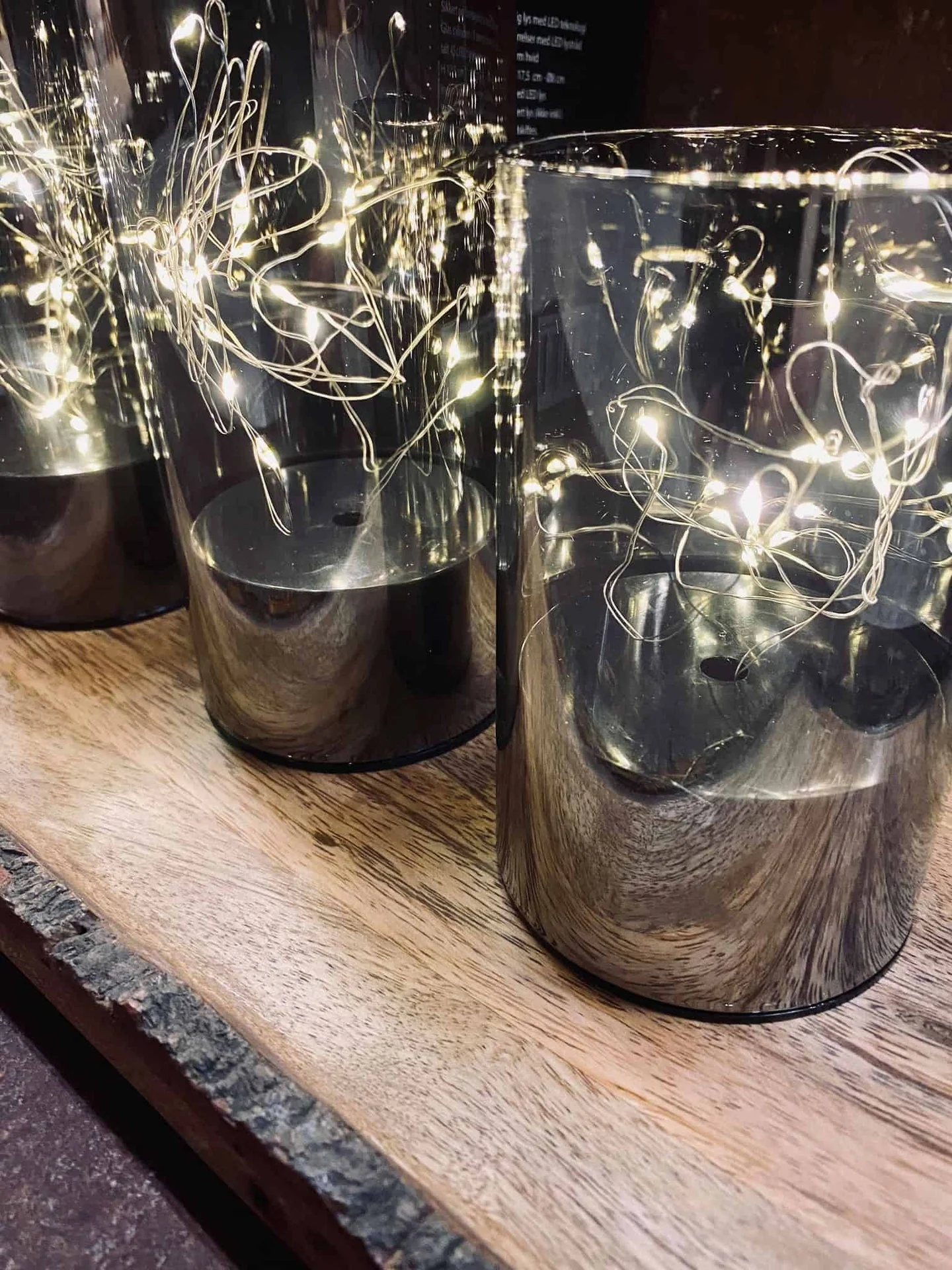 Glascylindrar i 3 storlekar med LED ljustråd.